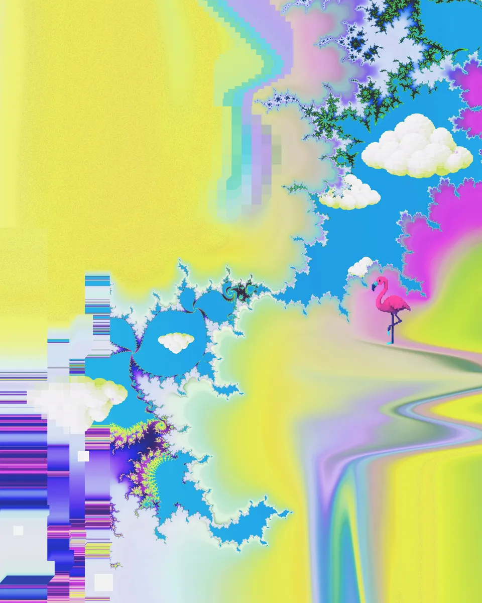 A digital escape into color and imagination. “Vacation in Mandelbrot” is a vaporwave wall art poster that blends surreal landscapes with soft gradients and nostalgic digital textures. Floating between reality and abstraction, it captures the feeling of drifting through a dream shaped by code. This frutiger aero aesthetic decor piece combines pastel skies, organic fractal forms, and subtle distortion into a playful surreal landscape print. The composition leans into a soft, uplifting palette, creating a calming yet visually rich pastel dreamcore art atmosphere. Hints of distortion and digital fragments introduce a refined glitch abstract wall decor edge, balancing softness with experimental structure. Perfect for: • bedrooms & cozy aesthetic spaces • creative studios & workspaces • pastel or colorful interiors • lovers of vaporwave, dreamcore & retro internet art
